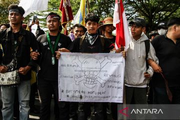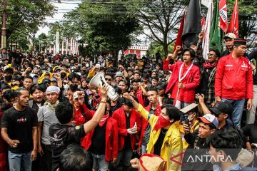 Pengunjuk rasa melakukan aksi di depan kantor DPRD Kalimantan Tengah, Palangka Raya, Senin (1/9/2025). Mereka mendesak DPR untuk segera mengesahkan RUU Perampasan Aset, RUU Masyarakat Adat dan menolak kenaikan gaji, tunjangan, dan pensiunan anggota dewan. ANTARA FOTO/Auliya Rahman.
