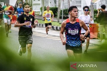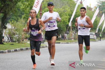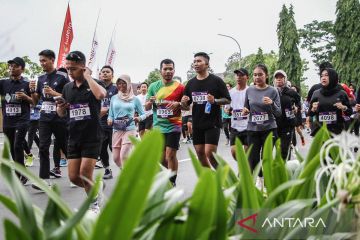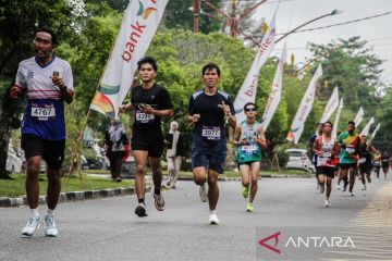 Sejumlah peserta berlari saat mengikuti Bank Kalteng Run 8 K di kawasan Bundaran Besar, Palangka Raya, Kalimantan Tengah, Minggu (16/11/2025). Ajang lari 8 kilometer tersebut diikuti sekitar 6.000 peserta dalam rangka menyemarakan HUT ke-64 Bank Kalteng sebagai upaya mengajak masyarakat Kalimantan Tengah meningkatkan kesadaran gaya hidup sehat. ANTARA FOTO/Auliya Rahman.