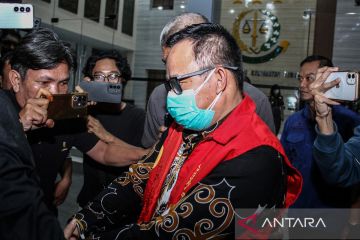 Kepala Dinas Energi dan Sumber Daya Mineral (ESDM) Provinsi Kalimantan Tengah, Vent Christway berjalan menuju mobil tahanan usai menjalani pemeriksaan di Kejaksaan Tinggi Kalimantan Tengah, Palangka Raya, Kamis (11/12/2025). Kejaksaan Tinggi Kalimantan Tengah menahan tersangka Vent Christway dan Direktur PT Investsi Mandiri berinisial HS terkait kasus dugaan tindak pidana korupsi penjualan zirkon dan mineral turunan lainnya oleh PT Investasi Mandiri pada tahun 2020-2025 dengan kerugian negara ditaksir mencapai Rp1,3 triliun. ANTARA FOTO/Auliya Rahman.