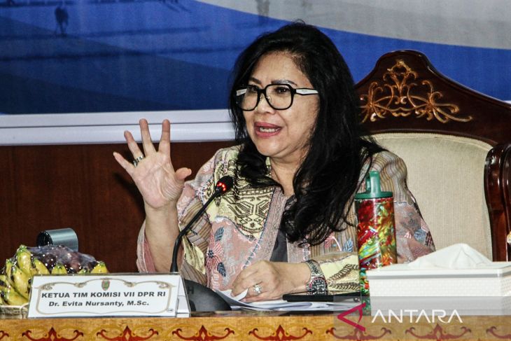 Wakil Ketua Komisi VII DPR Evita Nursanty memberikan pandangan saat Kunjungan Kerja Reses Masa Persidangan II Tahun 2025-2026 di kantor Gubernur Kalimantan Tengah, Palangka Raya, Senin (15/12/2025). Kunjungan kerja yang diikuti sejumlah lembaga penyiaran negara seperti LKBN Antara, TVRI dan RRI bersama kementerian dan pemerintah daerah tersebut mendiskusikan beberapa pokok pembahasan diantaranya tentang publikasi dan promosi potensi pariwisata di Kalteng, peningkatan sumber daya manusia para pelaku UMKM, dan pengembangan desa wisata. ANTARA FOTO/Auliya Rahman