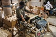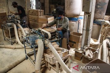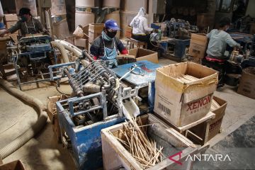 Pekerja menyelesaikan pembuatan sumpit kayu untuk ekspor di Sentra IKM Temanggung Tilung, Palangka Raya, Kalimantan Tengah, Senin (9/2/2026). Badan Pusat Statistik (BPS) mencatat nilai ekspor nonmigas Indonesia periode Januari-Desember 2025 meningkat 7,66 persen menjadi USD269,84 miliar bila dibandingkan Januari-Desember 2024 sebesar USD250,65 miliar dimana kenaikan ekspor non migas didorong oleh sektor industri pengolahan dan pertanian. ANTARA FOTO/Auliya Rahman.