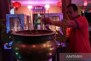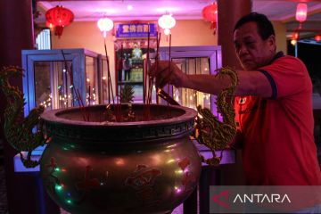 Warga keturunan Tionghoa menyalakan dupa saat menyambut tahun baru imlek di Vihara Avalokitesvara, Palangka Raya, Kalimantan Tengah, Senin (16/2/2026). Sembahyang malam pergantian tahun baru imlek 2577 Kongzili tersebut sebagai momentum untuk berdoa dan berharap kehidupan yang lebih baik di tahun Kuda Api. ANTARA FOTO/Auliya Rahman